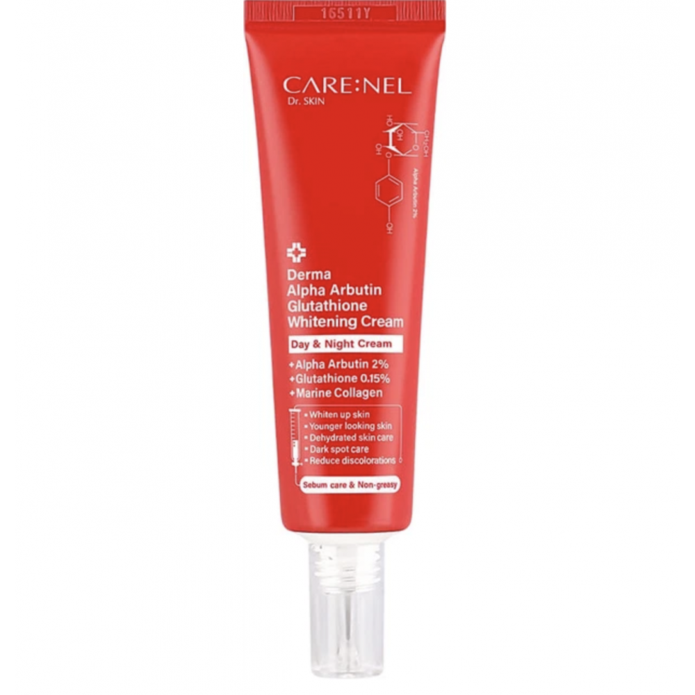 Крем для постепенного осветления кожи, уменьшения пигментации и выравнивания тона. Его формула сочетает высокую концентрацию альфа-арбутинa – около 20 000 ppm. Альфа-арбутин подавляет синтез меланина и препятствующих появлению новых тёмных пятен. В составе также присутствует глутатион в концентрации примерно 1 500 ppm – это мощный антиоксидант, который помогает осветлять кожу, улучшать её общий тон и защищать клетки от окислительного стресса.
